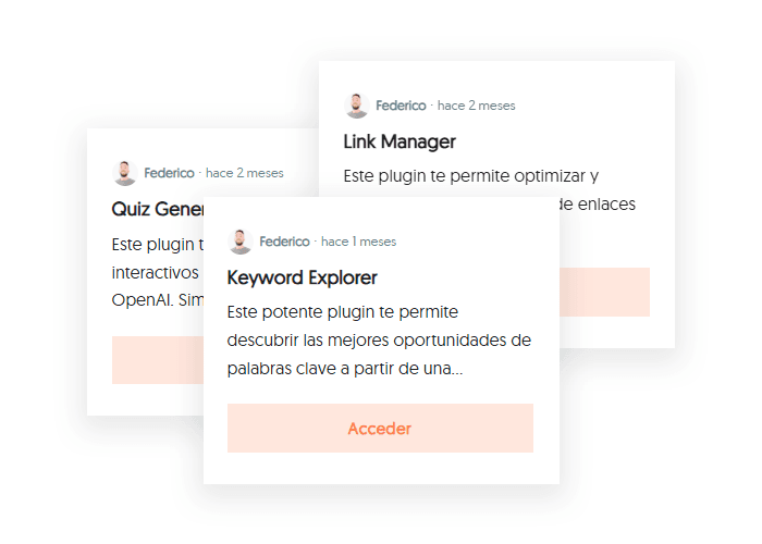 Resuelven tareas clave como buscar nichos, enlazar contenido, optimizar tu enlazado interno, montar webs automáticas. Y todos los meses publicamos uno nuevo.