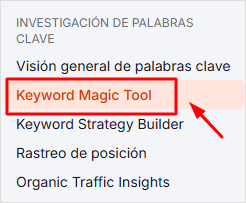 En este caso usaré la función de Keyword Magic Tool de Semrush que me encanta: