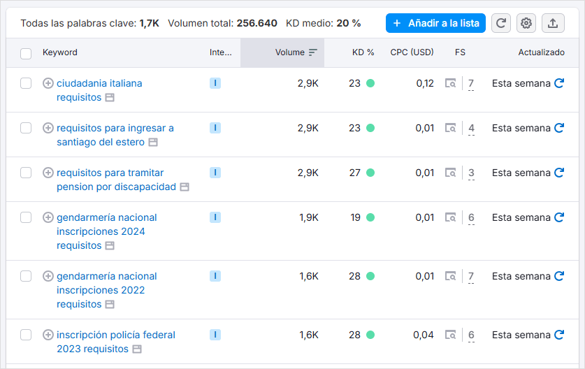 Y, ahora sí, tengo la lista de keywords perfecta para seguir ampliando mi web de trámites de Argentina.